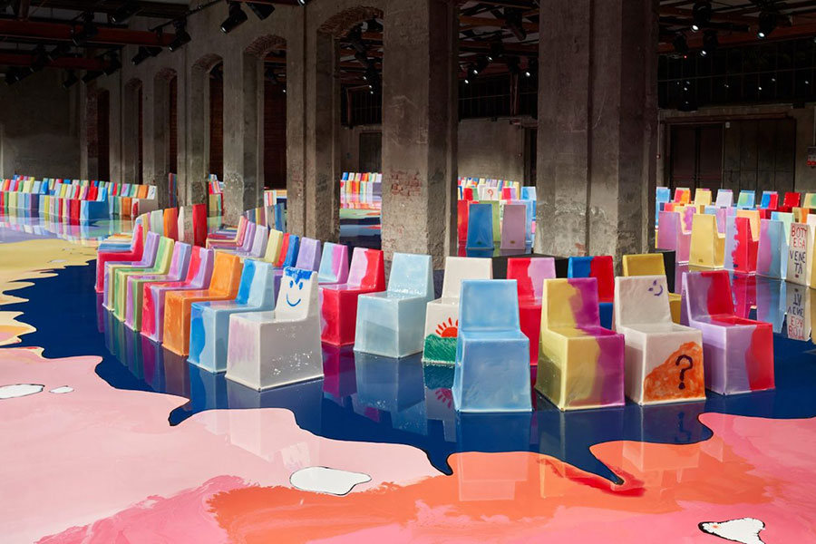 Les chaises « Come Stai ? », confectionnées par Gaetano Pesce et Matthieu Blazy pour Bottega Veneta, étaient les protagonistes et vedettes du défilé Summer 2023 !