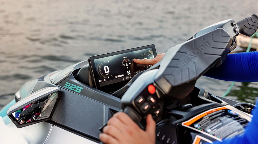 Le GTX Limited 325 propose une technologie avancée qui le distingue clairement sur le marché du jet ski connecté. Il est doté d’un écran tactile panoramique, d’un système audio premium intégré, de la navigation assistée et d’un régulateur de vitesse intelligent.