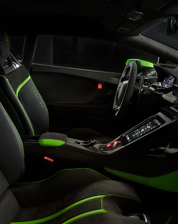 L’intérieur est aussi polyvalent que tout le reste de la dernière Huracán. Des options de personnalisation étendues, presque infinies, sont disponibles pour personnaliser entièrement l’apparence, la configuration dynamique et les réactions du conducteur. En outre, l’interface HMI a été redessinée pour être exclusive à la Tecnica. Les choix de couleurs et de garnitures peuvent être orientés vers le luxe ou vers la sportivité, avec plus de 200 options de peinture supplémentaires disponibles dans le cadre du programme Lamborghini Ad Personam. Les possibilités de faire de cette voiture extraordinaire un bijou personnalisé sont infinies.