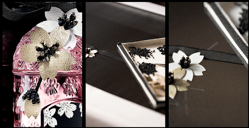 Kyoko nous dit que " depuis les temps anciens les Japonais ont écrit des poèmes en rêvant de cerisier en fleurs flottant au clair de lune ", la nuit la perception des couleurs étant différente, elle a décidé de créer une variation unique et poétique de la fleur. Une représentation des fleurs de cerisier dans un sublime clair-obscur de blanc, de noir et d'or.