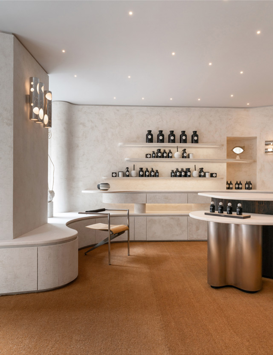 Le second espace propose une expérience immersive dans l'univers parfumé de la marque. Ici, les clients peuvent découvrir le lancement de la dernière Eau de Parfum ainsi que les collections haut de gamme et entièrement naturelles de parfums d'intérieur et d'apothicaire.