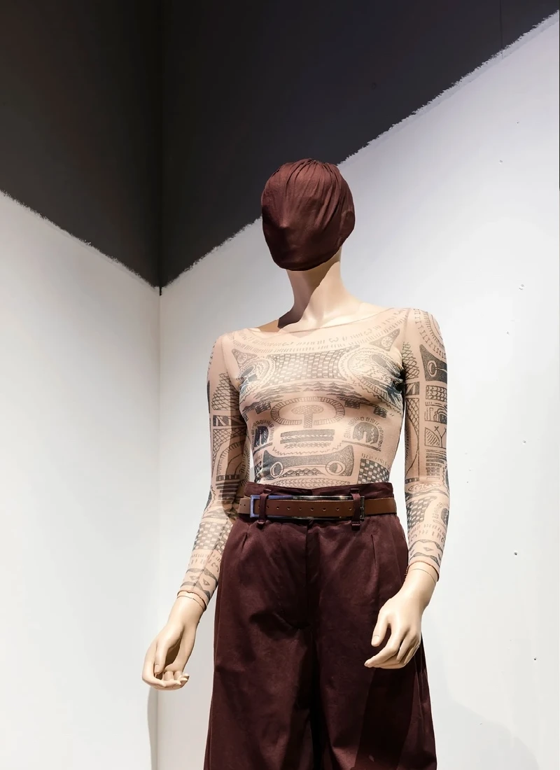Ceux-ci sont présents sur les ensembles et autres pièces moulantes. Ils accompagnent la volonté du créateur de rendre grâce aux corps atypiques dans le monde de la mode. Pour cette collection, le créateur s’inspire des tatouages rituels de certaines cultures.