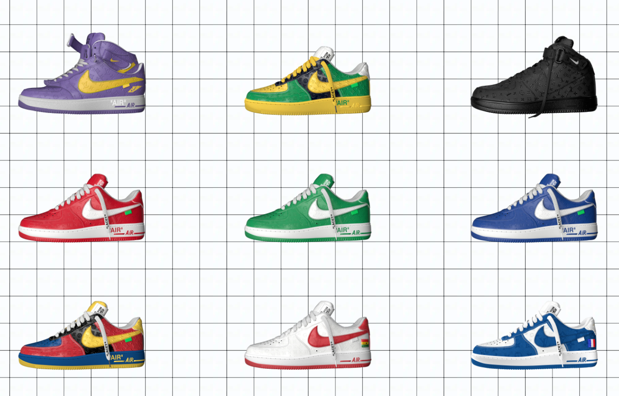 Notez que les 47 éditions de la sneaker Nike « Air Force 1 » sont toutes signées par le Directeur Artistique Homme de Louis Vuitton en partenariat avec Nike.