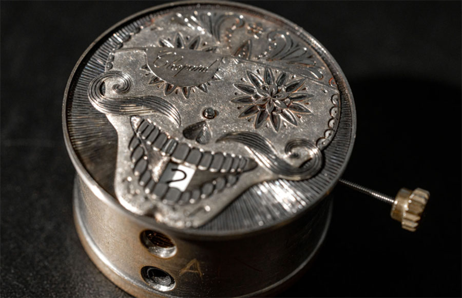 Proposé aux enchères à l’occasion de la vente TimeForArt, le modèle L.U.C Quattro Spirit 25 TimeForArt Edition est une pièce unique associant un cadran en or entièrement gravé à la main avec un mouvement manufacture pourvu d’un mécanisme d’heures sautantes innovant et sophistiqué.