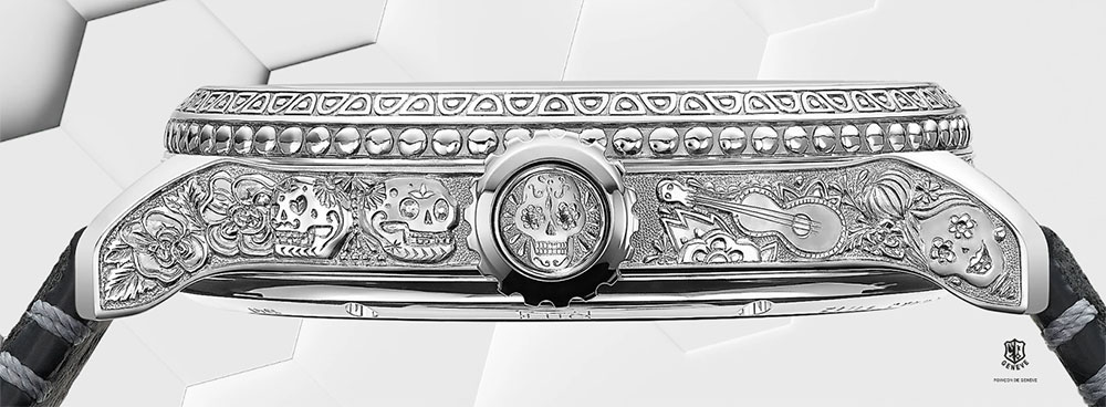 Avec cette pièce unique certifiée Poinçon de Genève, les talentueux artisans de la maison orchestrent la rencontre entre la tradition mexicaine et leurs métiers d’art.