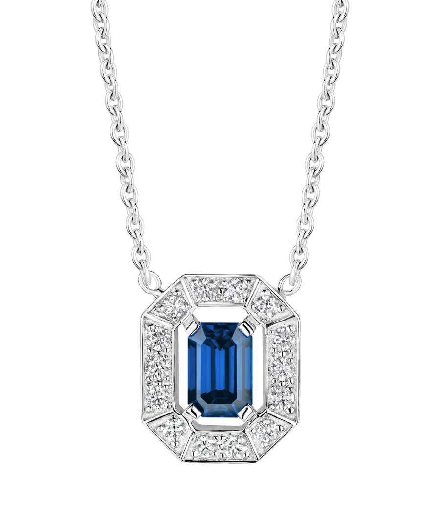 Le pendentif Art Déco en Or blanc 750 ‰ met en valeur un motif géométrique aux lignes graphiques qui entoure une pierre d’exception : une pierre octogonale de 6 x 4 mm. Pour encore plus d’élégance, l’ajourage du motif apporte de la lumière et vient souligner la pierre de centre avec légèreté. Sa chaîne rattachée au pendentif en fait une création pratique au quotidien car elle empêche que le motif ne se retourne. De plus, sa chaîne est ajustable grâce à ses trois anneaux d’accroche à 40, 42 et 45 cm.