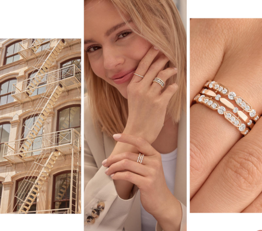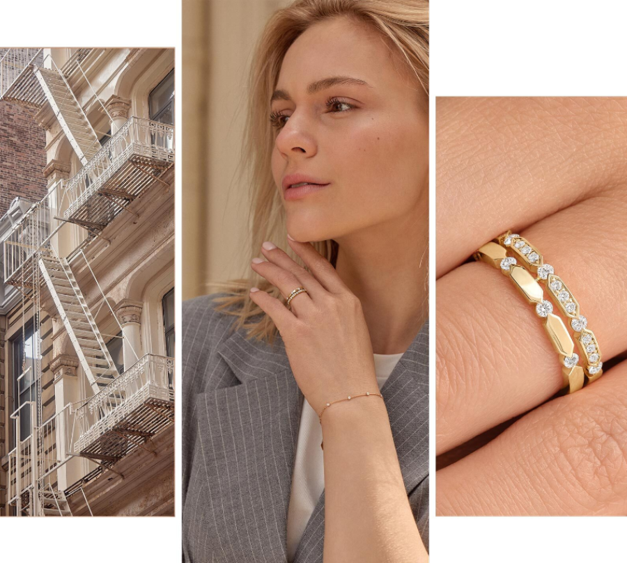 Un motif hexagonal qui fait dialoguer la vitalité du métal et la pureté du diamant, évoquant tour à tour les gratte-ciels de Manhattan ou les escaliers graphiques si caractéristiques de Soho…