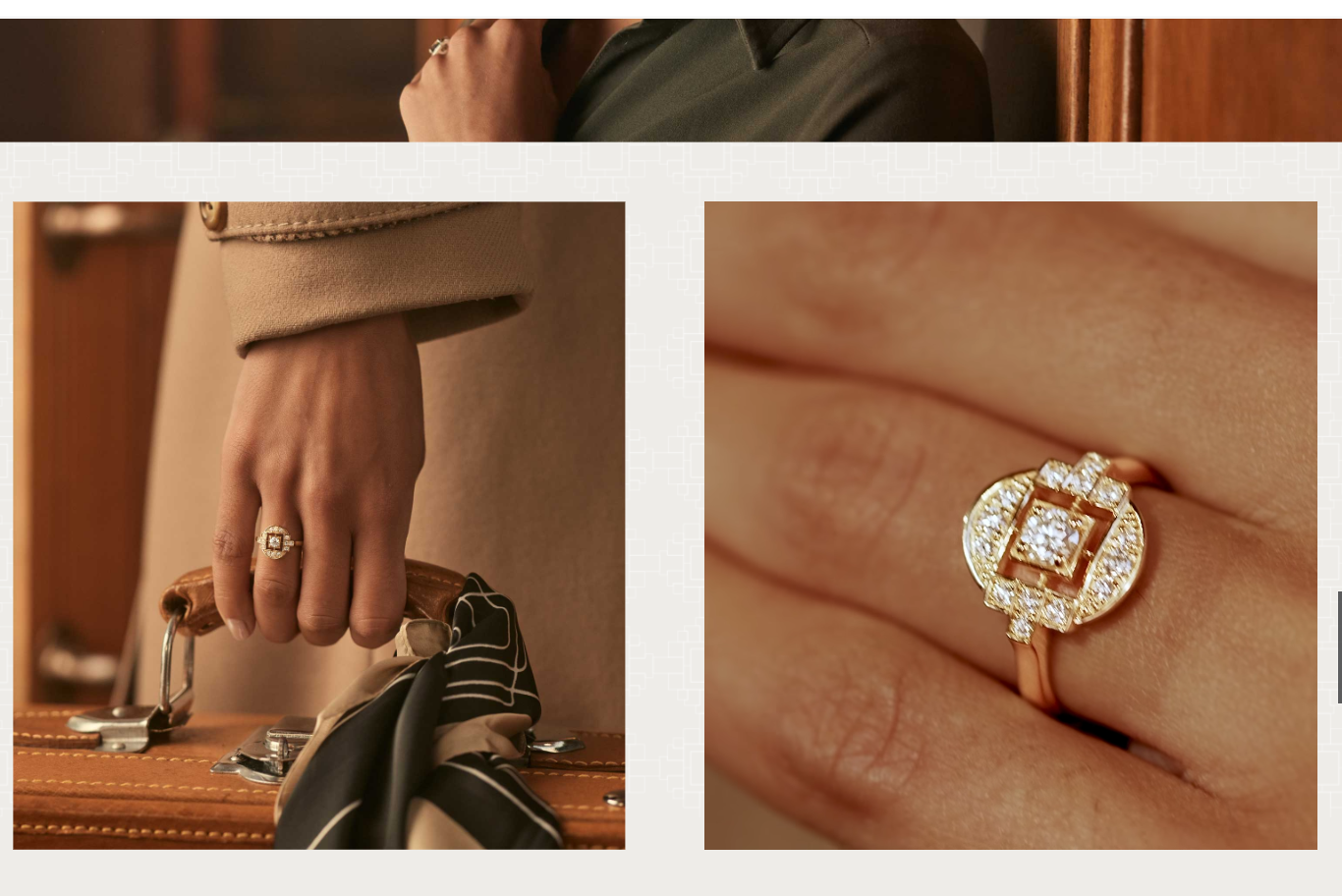 C’est une collection accueillant des motifs précis ainsi que des formes géométriques dont le caractère affirmé n’a d’égal que leur précieuse sobriété et pure élégance.