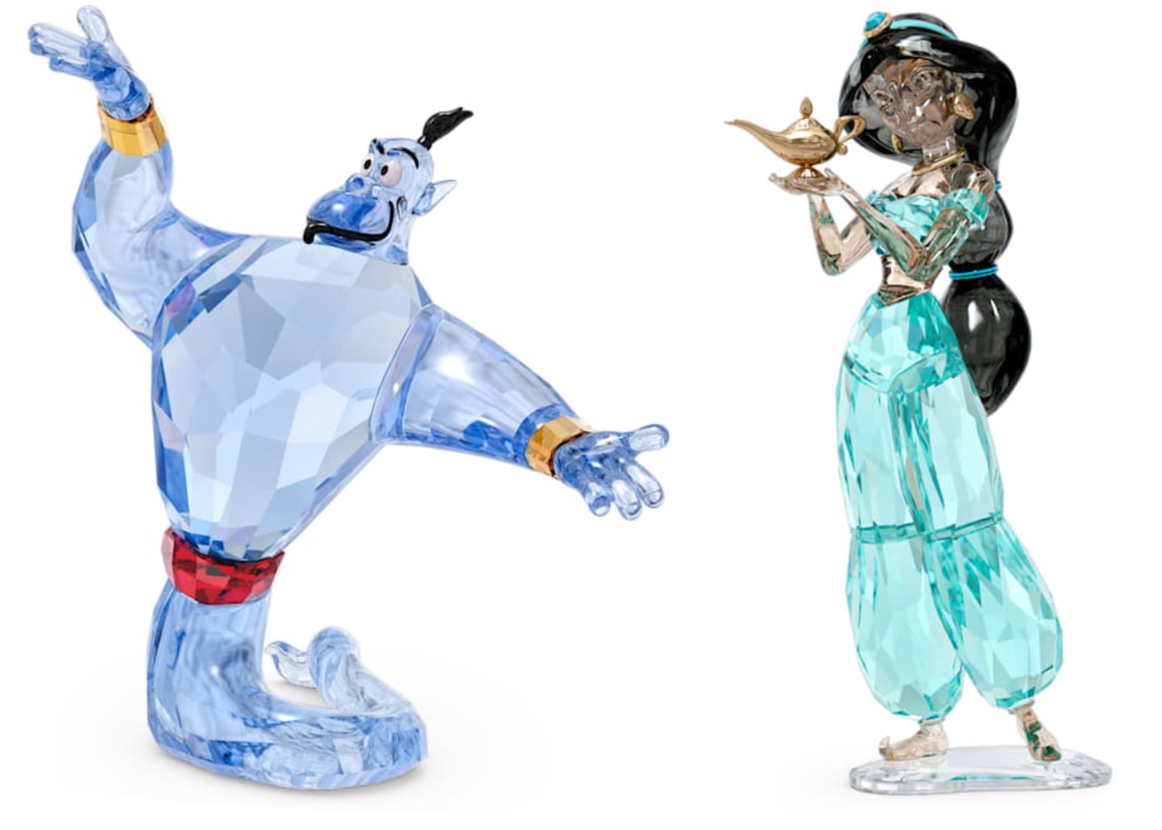 Eh oui ! Aujourd’hui, les feux des projecteurs sont braqués sur le monde merveilleux d’Aladdin ! Une gamme féerique de décorations en cristal. Tout juste créée en 2022 pour célébrer le 30 ème anniversaire du dessin animé mythique, chaque personnage prend vie dans un cristal taillé avec précision et aux couleurs intenses ! Six produits tout aussi brillants les uns que les autres : le Génie, la Princesse Jasmine, Abu, la Lampe Magique et Aladdin Lago. Toutes faites avec une centaine de facettes de cristal taillé avec expertise et minutie ! Un travail de magicien !