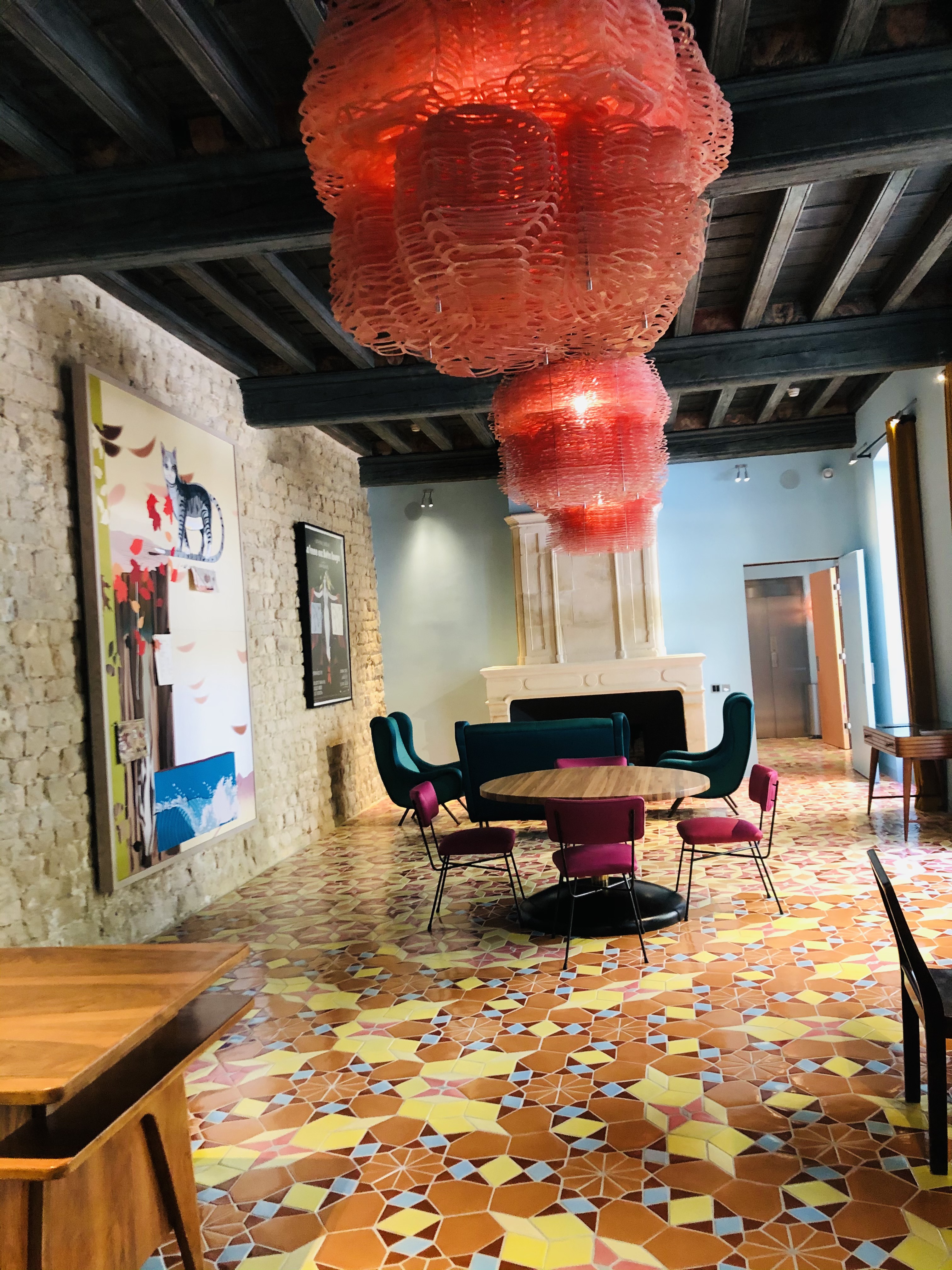 En pièce maîtresse, cette superbe mosaïque qui recouvre quelque 6000 m2 dans tout l’hôtel, déclinant 11 formes et 18 couleurs. Fabriquée au Mexique dans une ancienne usine qu’il a fallu réouvrir pour l’occasion tant la commande était importante, elle a été soigneusement posée par une entreprise arlésienne.