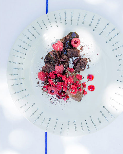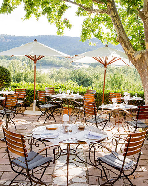 La gastronomie se déguste sur les terrasses, dans la belle salle à manger, en tête à tête dans le salon des graveurs, boudoir cosy où l’on retrouve des gravures anciennes sur le thème de la pâtisserie et de la boulangerie, mais aussi dans le jardin, autour d’un panier de pique-nique chic.