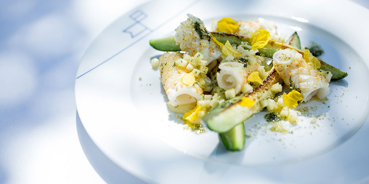 Derrière les fourneaux, Frédéric Garnier, fidèle du Chef depuis plus de 20 ans, excelle dans une cuisine proche de la nature où le produit est roi. En vedettes incontestées de ses assiettes, les produits issus du magnifique potager qui s‘étend au fond de la propriété.