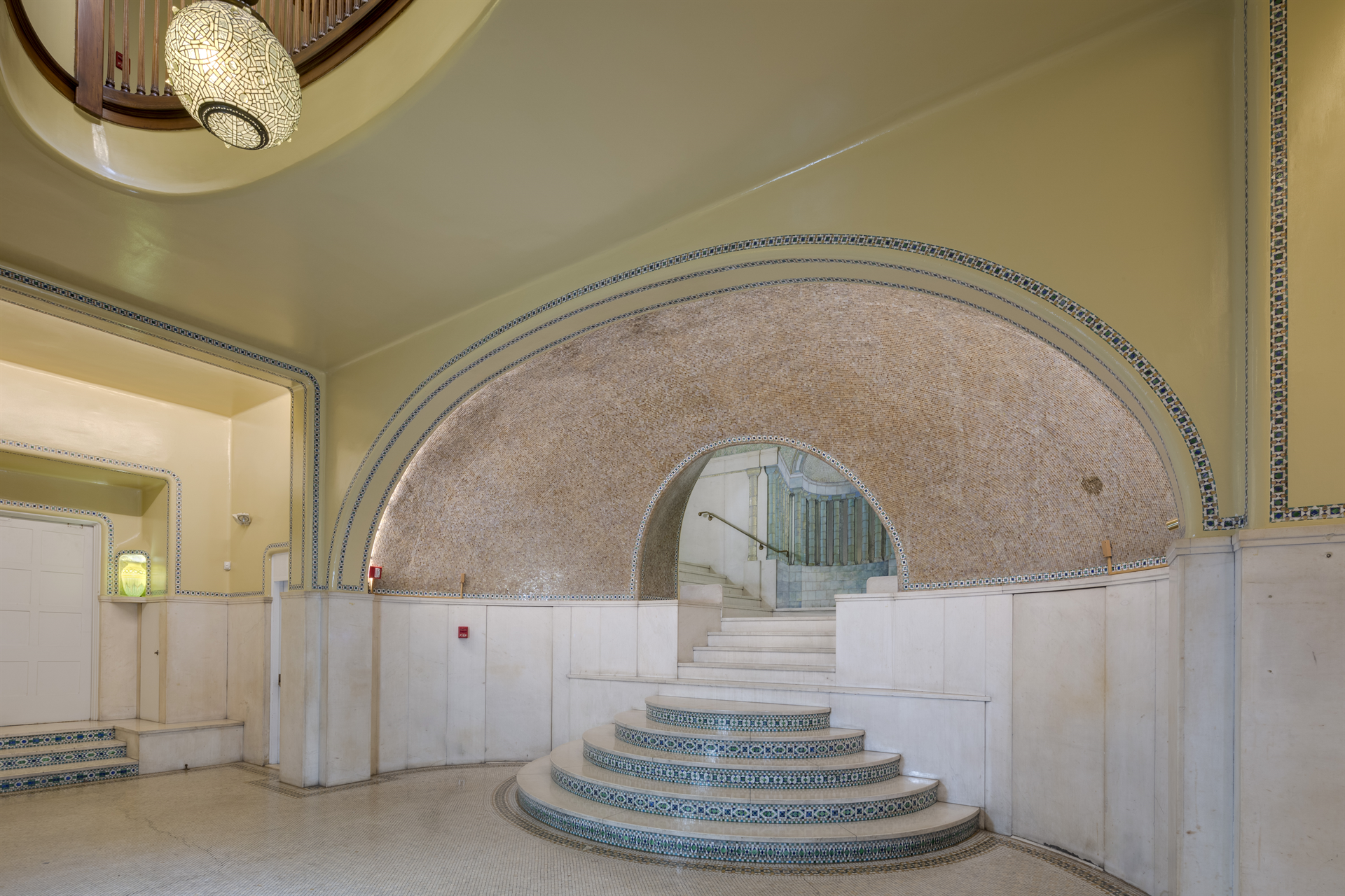 Le manoir de cinq étages, qui a été classé monument historique national en 2005, se trouve sur la très chic Commonwealth Avenue, dans le quartier de Back Bay de la ville, et occupe une surface intérieure de quelque 15 600 pieds carrés. Les pièces présentent de nombreux détails préservés, notamment un temple grec en trompe-l'œil, des mosaïques en verre Tiffany, des moulures élaborées et des plafonds voûtés. Alice Cooney Frelinghuysen, spécialiste de Tiffany au Met, a même déclaré que la maison était "peut-être l'utilisation la plus somptueuse et la plus inhabituelle de la décoration en mosaïque dans un contexte domestique" et l'a qualifiée de "témoignage supplémentaire de l'amour de Tiffany pour l'art islamique".