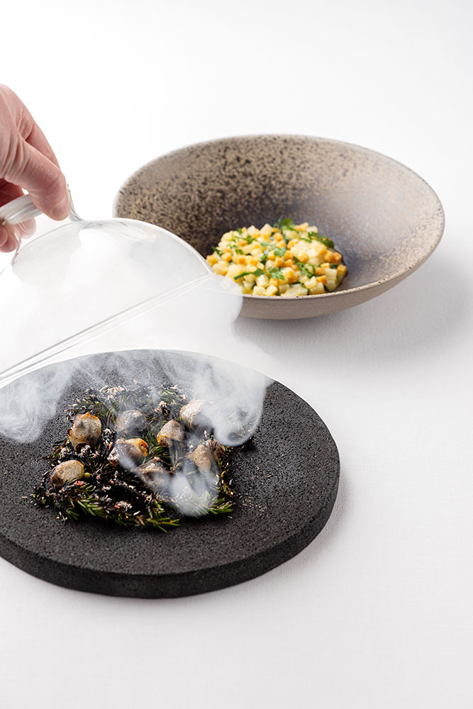Escargots de Touraine et lard de Colonnata cuits au feu d'Enfer, bettes mijotées au Vin Jaune ãVictor Bellot