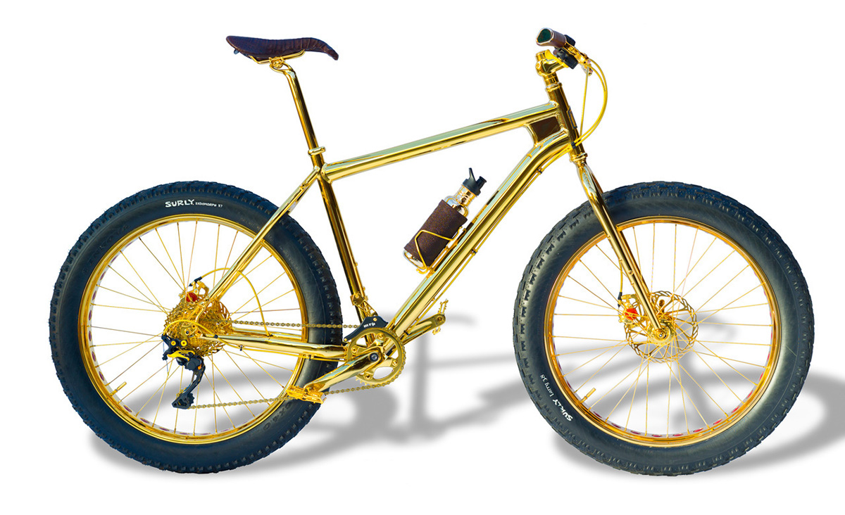 Ce vélo doré ayant nécessité plus de 700 heures de dur labeur est entièrement en plaqué or 24 carats, faisant de lui le plus onéreux VTT ayant jamais existé.